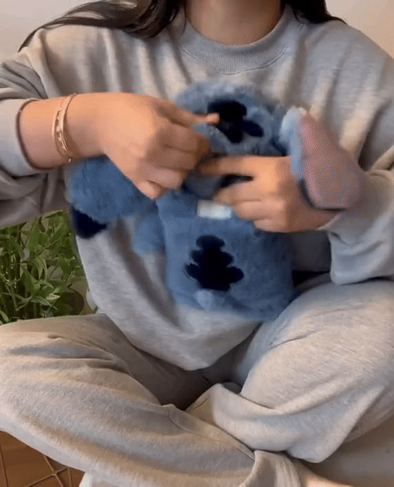 Solo tienes que colocar agua caliente (No hirviendo) en la bolsa interna del peluche. Luego, vuelve a introducirla dentro del peluche y estará listo para usar.